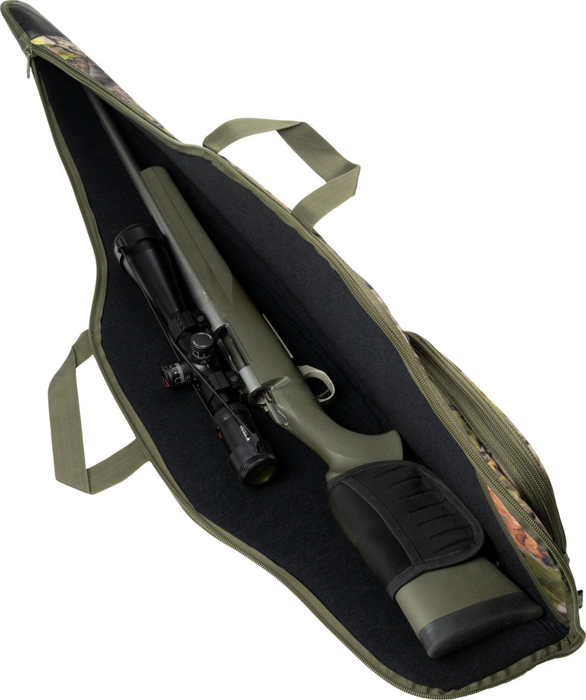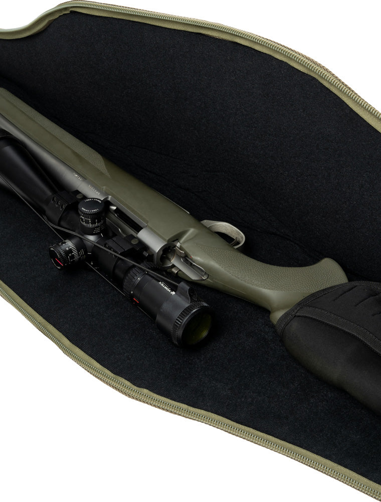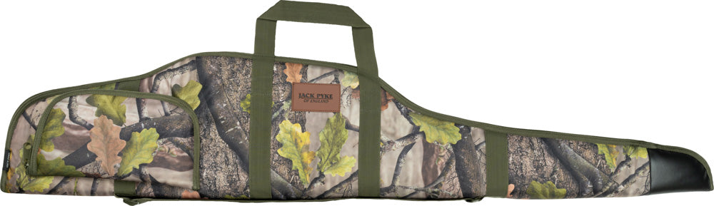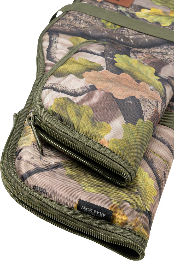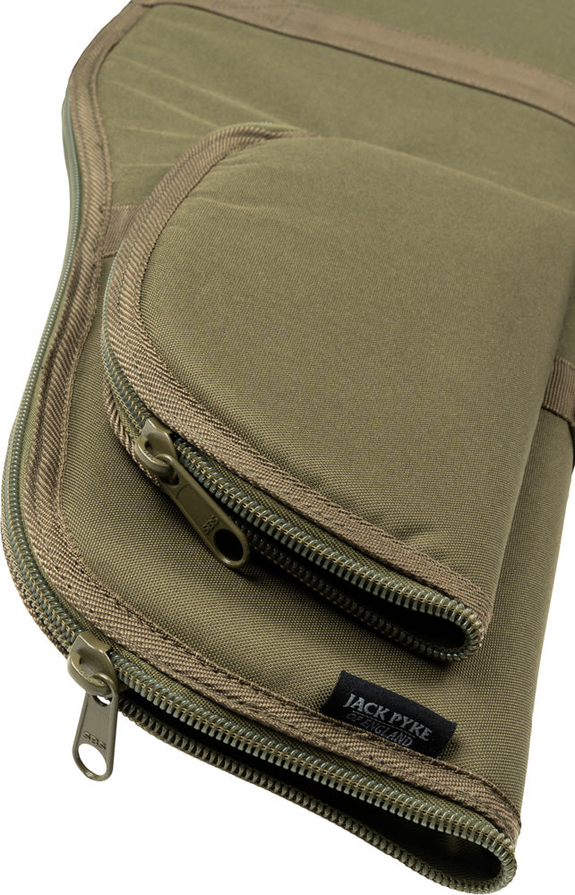 The Jack Pyke Rifle and Sight Slip is ideal to securely carry your rifle or carabine with spare room for the scope. The leather trim at the top adds a touch of class to the bag. It can be carried with a handle or you can sling across your shoulders using the adjustable strap. With the full-length zip, the gun can be easily accessed at any time. Generous padding inside the slip provides extra cushioning and at the same time increases the safety of your rifle. The front pouch adds to the practicality of the bag and can be used as ammunition holder.